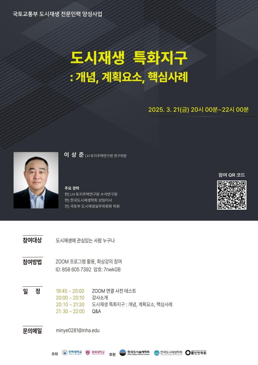 ■ 특강주제 : 도시재생 특화지구: 개념, 계획요소, 핵심사례