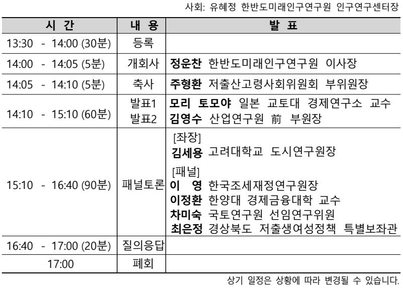 ■ 주 제: 줄어드는 인구, 달라지는 도시: 한일 지역 발전의 새로운 모색