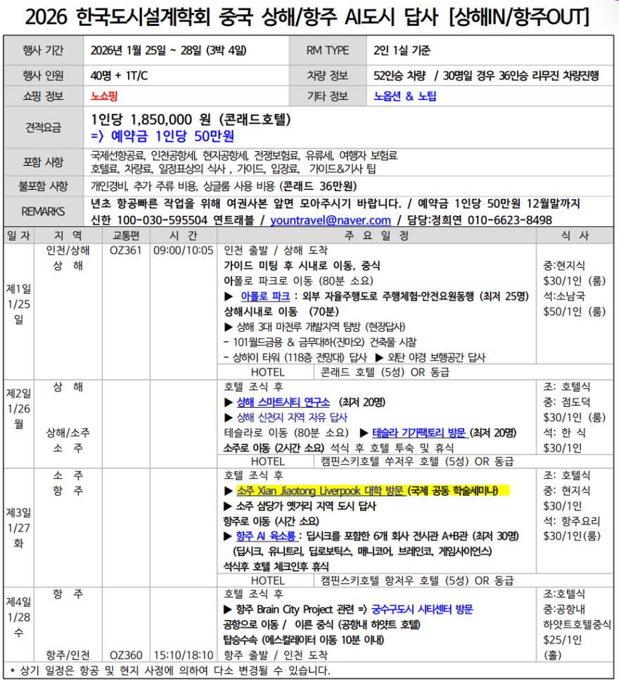 한국도시설계학회 2026 동계 중국 상해/항주 AI도시 답사