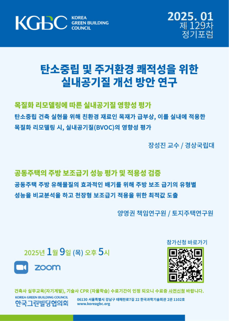 우리 학회 탄소중립건축원에서 "탄소중립 건축기준: 전 생애주기 평가와 적용"의 제정 및 발간을 준비하고 있습니다. 이에 작성된 (안)을 공람하오니, 회원 여러분의 고견을 부탁드립니다. 건축분야 탄소중립이라는 전지구적 사안의 조속한 해결을 위하여 회원 여러분의…