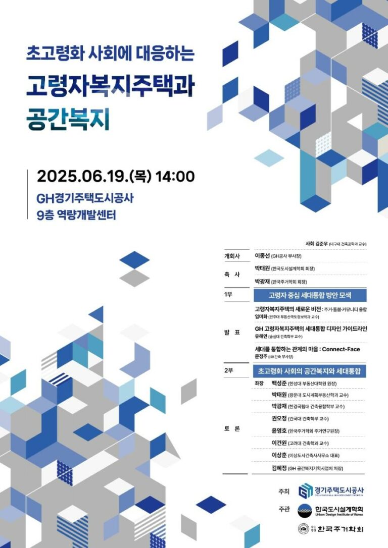 우리학회 미래도시연구위원회(위원장: 오주석)에서는 「미래의 도시, 오늘의 오늘」 이라는 주제로 대중, 업계 관계자, 학생들을 위한특강 시리즈를 아래와 같이 개최하오니, 관심있는 회원분들의 많은 참여 부탁드립니다 한국도시설계학회 회장 박태원미래도시연구위원회 위원장 오주석 ·부위원장 배준서■ 일시- 1회차 : 2025년 11월 13일 오후 3시 (온/오프라인 하이브리드)- 2회차 : 2025년 11월 20일 오후 3시 (온/오프라인 하이브리드)-…